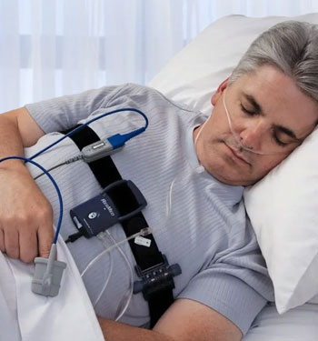 A sleep study is a non-invasive, overnight test that monitors and records your brain activity, breathing patterns, oxygen levels, heart rate, and body movements while you sleep.