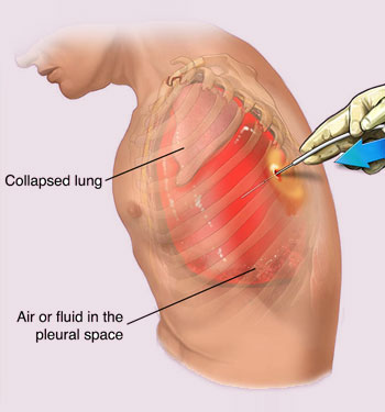 Pleural tapping is a medical procedure in which a needle is inserted into the pleural space (the area between the lungs and the chest wall) to remove excess fluid.